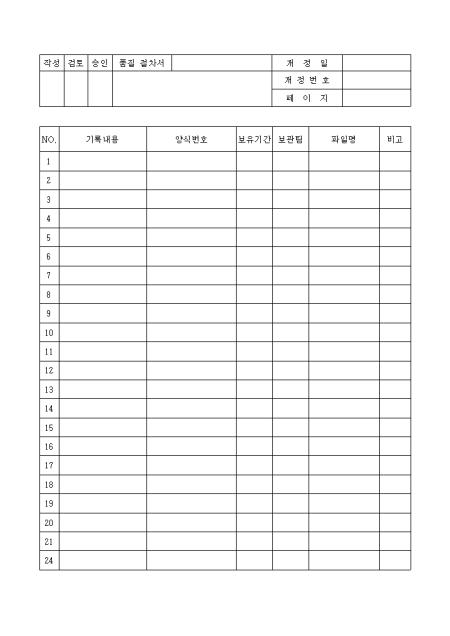 기록내용,양식번호,보유기간,파일명을 기록하는 파일관리목록표입니다.