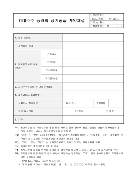 최대주주 등과의 장기공급 계약체결입니다. 성명, 회사와의 관계, 장기공급계약 내용, 거래일자 등으로 구성되어 있습니다.