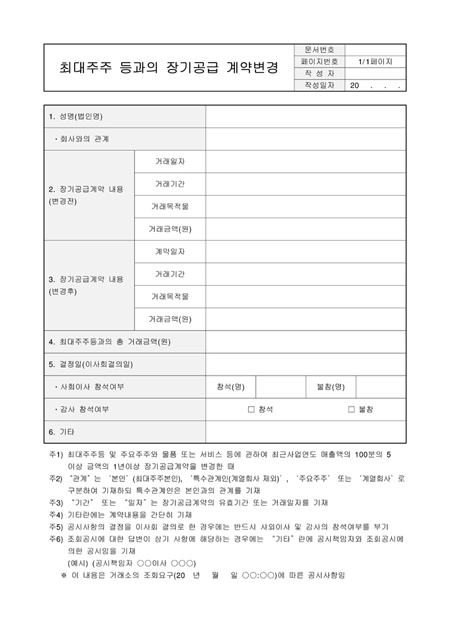 최대주주 등과의 장기공급 계약변경입니다. 장기공급계약 내용, 계약일자, 거래기간, 거래목적물 등으로 구성되어 있습니다.