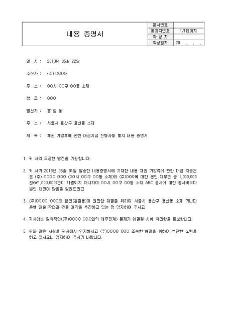 (내용증명)채권가압류에 관한 대금지급 진행사항 통지입니다. 일시, 수신자, 주소, 참조 등으로 구성되어 있습니다.