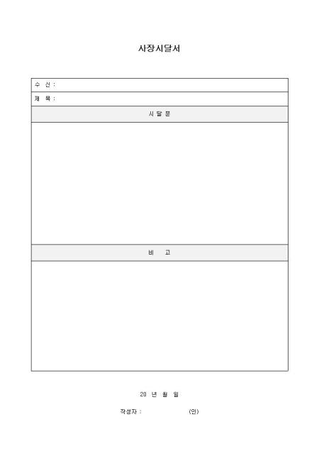 사장 시달서(기본양식)입니다. 사장의 지시내용을 기록하여 전달하는 양식으로 비서실에서 주로 쓰입니다.