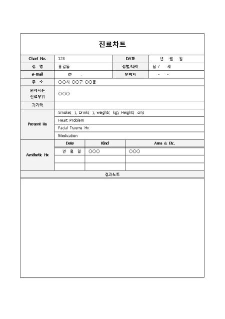 정신과 진료차트입니다. 정신과 병원에서 사용하는 진료차트로 환자명, 과거력, 환자상태, 경과노트 등으로 구성되어 있습니다.