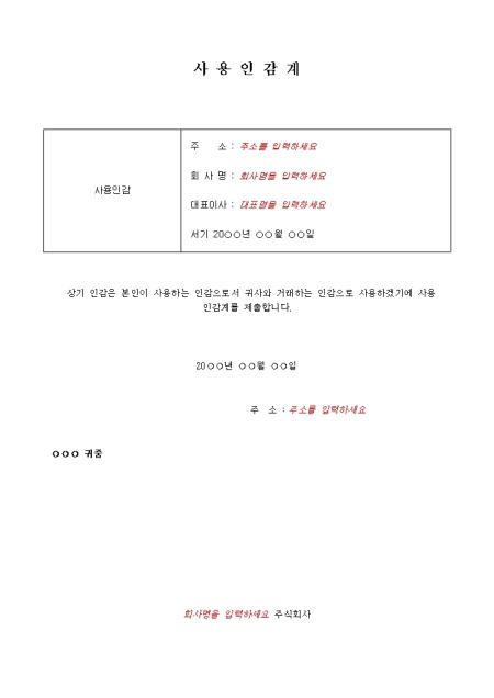 거래사에 거래에 사용되는 인감을 신고할때 사용하는 양식입니다.