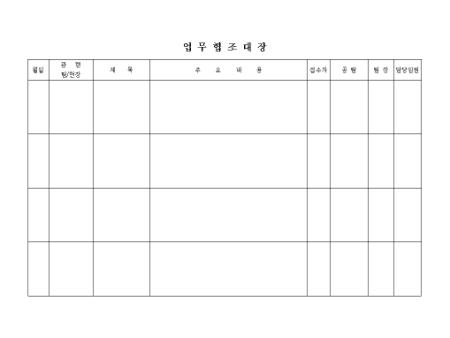 업무협조내역을 기재하는 장부양식입니다.