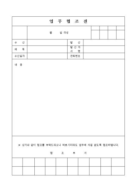 업부 협조를 요청할 때 사용하는 양식입니다.