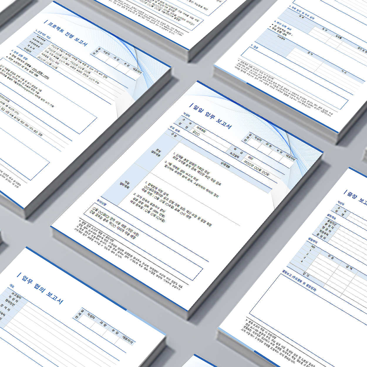 [보고 패키지]는 업무 보고서, 출장 보고서, 프로젝트 진행 보고서, 회의록, 미팅보고서, 매출 보고서, 결산 보고서, 성과 보고서 등 업무의 핵심 성과를 체계적으로 기록하고 관리하는 데 필요한 다양한 서식들을 패키지로 제공합니다. 해당 패키지를 통해 보고자는 자신의 업무를 명확하게 정리하고 필요한 정보를 신속하게 전달하며, 회사는 불필요한 커뮤니케이션 오차를 최소화하고 전략적인 의사결정을 내릴 수 있습니다.