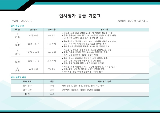 [인사평가 패키지] 인사평가 등급 기준표