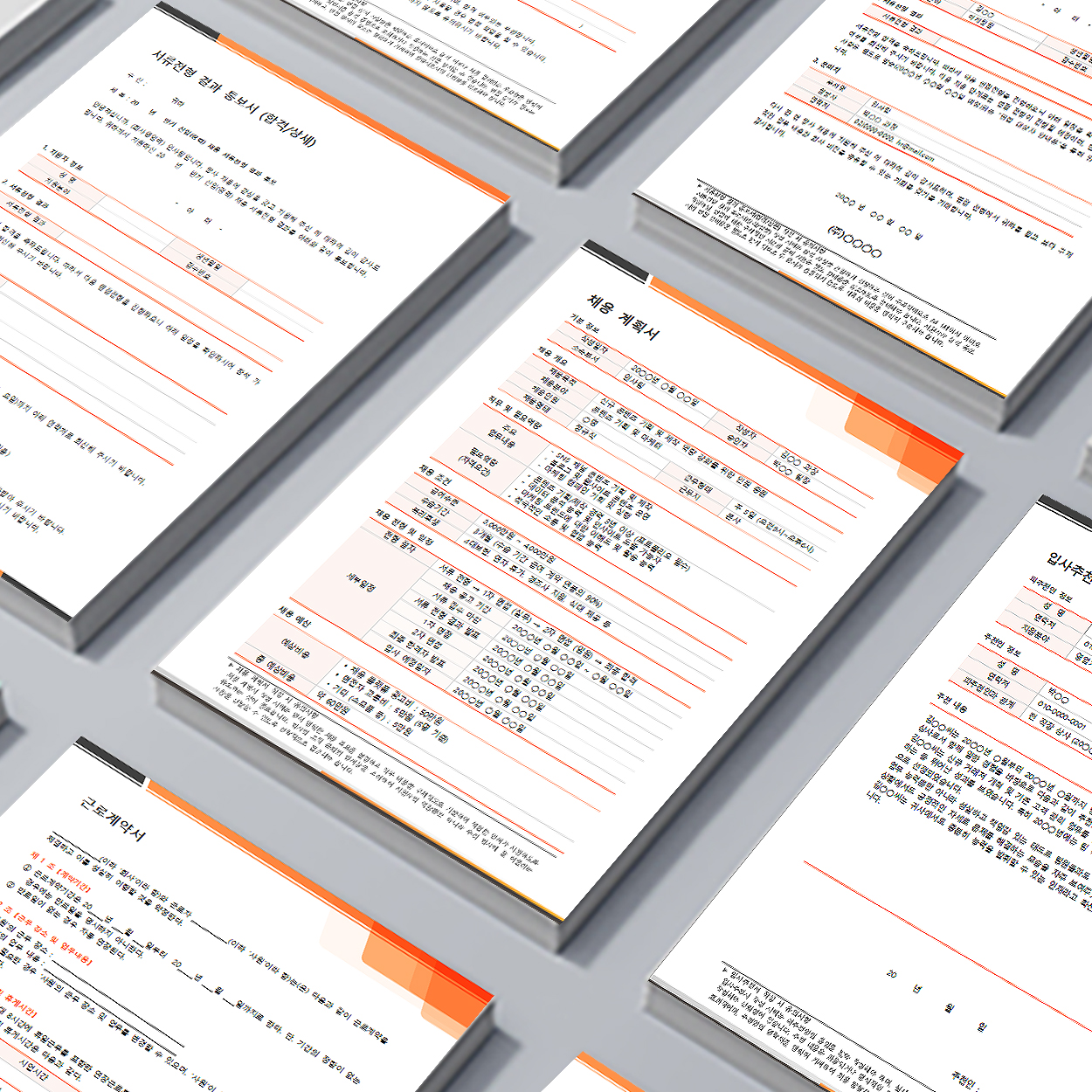 [채용 서식 패키지]는 인재 채용의 전 과정을 체계적으로 관리할 수 있도록 채용공고, 입사지원서, 면접평가표, 신원보증서, 입사서류 체크리스트 등 채용 업무에 필요한 핵심 서식들을 한데 모아 제공합니다. 이 패키지를 활용하면 채용 담당자는 공정하고 효율적인 전형 프로세스를 운영할 수 있습니다.