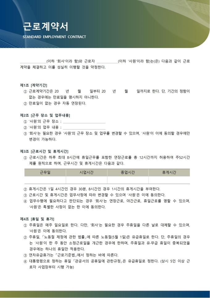 근로계약서는 사용자와 근로자가 근로 제공과 임금 지급을 핵심으로 하는 근로관계를 공식적으로 체결하는 문서로 근로계약서는 단순한 고용 형식 절차가 아니라 근로 조건의 기준을 명확히 하고 임금 분쟁, 근무 시간 분쟁, 부당 해고 등 노무 관련 분쟁을 사전에 예방하는 핵심 법적 문서입니다.