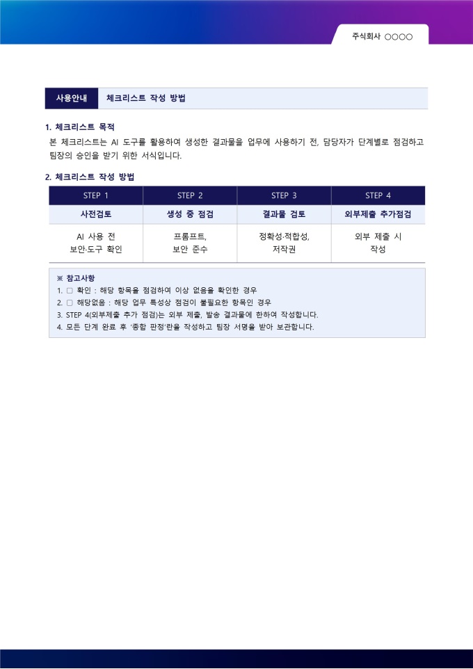3. 외부 제출용은 반드시 2인 이상 검토를 원칙으로 하세요.