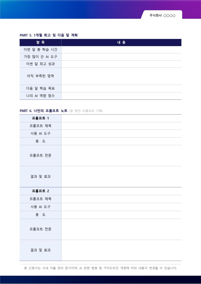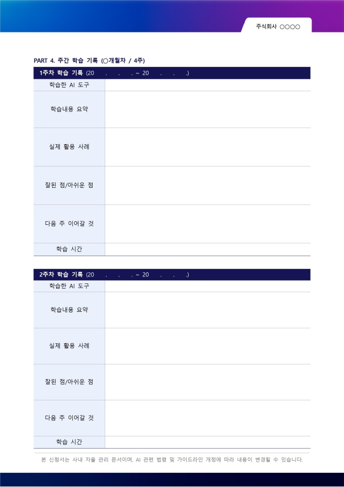 이 플래너는 개인 학습용으로만 활용하는 것이 아니라 다양한 방식으로 확장할 수 있습니다. 기업에서 신입 사원 AI 온보딩 교재로 활용하거나, 사내 AI 스터디 모임에서 팀원들이 함께 작성하며 진도를 공유하는 용도로도 효과적입니다. 학원이나 교육기관에서는 AI 교육 과정 수강생에게 배포하여 수업과 자습을 병행하는 학습 도구로 활용할 수 있습니다.