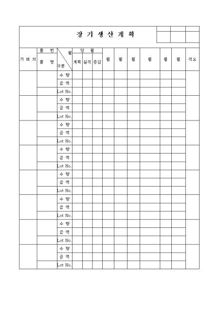 거래처,품번,품명,당월 계획,실적,증감을 기록하는 양식입니다.