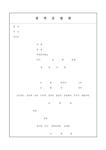 근무한 경력이 있음을 증명할 때 사용하는 양식입니다.