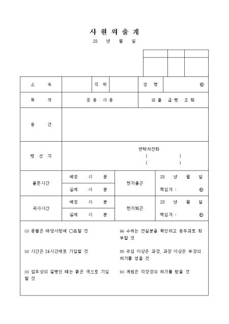 사원의 외출시 사용하는 양식입니다.
