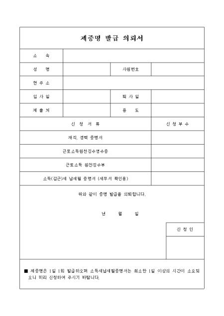 제증명발급을 신청할 때 사용하는 양식입니다.