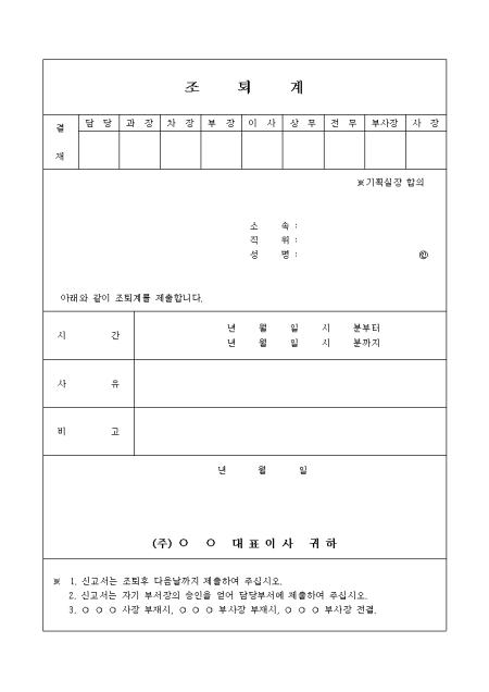 조퇴에 대한 내역을 보고할 때 사용하는 양식입니다.