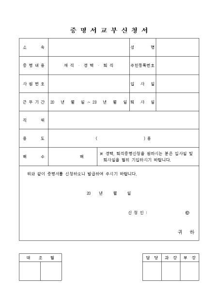 증명서 발급을 신청할 때 사용하는 양식입니다.