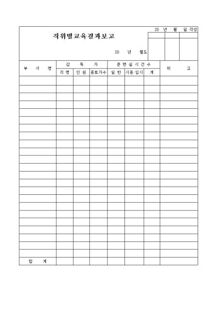 직위별 교육 결과를 보고할 때 사용하는 양식입니다.