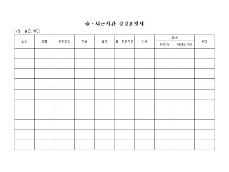 출퇴근 시간의 정정을 신철할 때 사용하는 양식입니다.