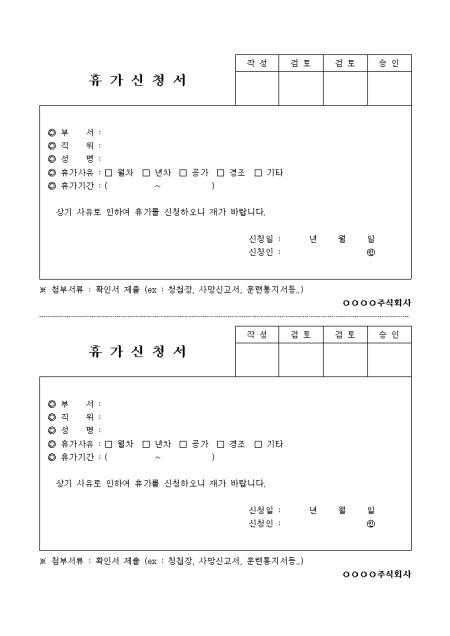 회사에 휴가를 신청할 때 사용하는 양식입니다.