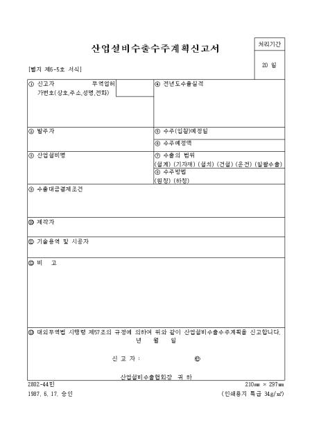 대외무역법 시행령 제57조의 규정에 산업설비수출수주계획을 신고할때 사용하는 서식입니다.