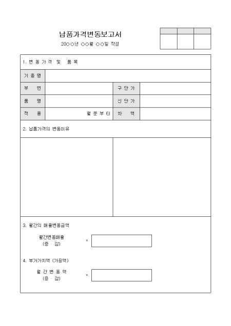 납품제품에 대한 가격 변동사항을 보고할 때 사용하는 양식입니다.